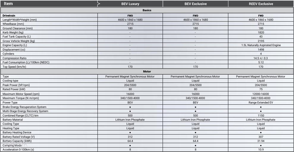 Forthing Friday 2025 Specs Sheet 4