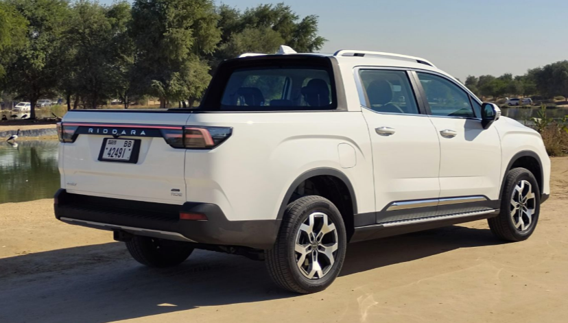 On the exterior, it features signature "RIDDARA" illuminated grille branding, modern LED headlights with DRLs, and sleek LED taillights. Convenience-focused features include power-adjustable and heated mirrors, side steps, trailer hook, a pull-out ladder on the tailgate, an electric trunk release, and an aluminium roof rack. Automatic wipers also add to its premium touches.